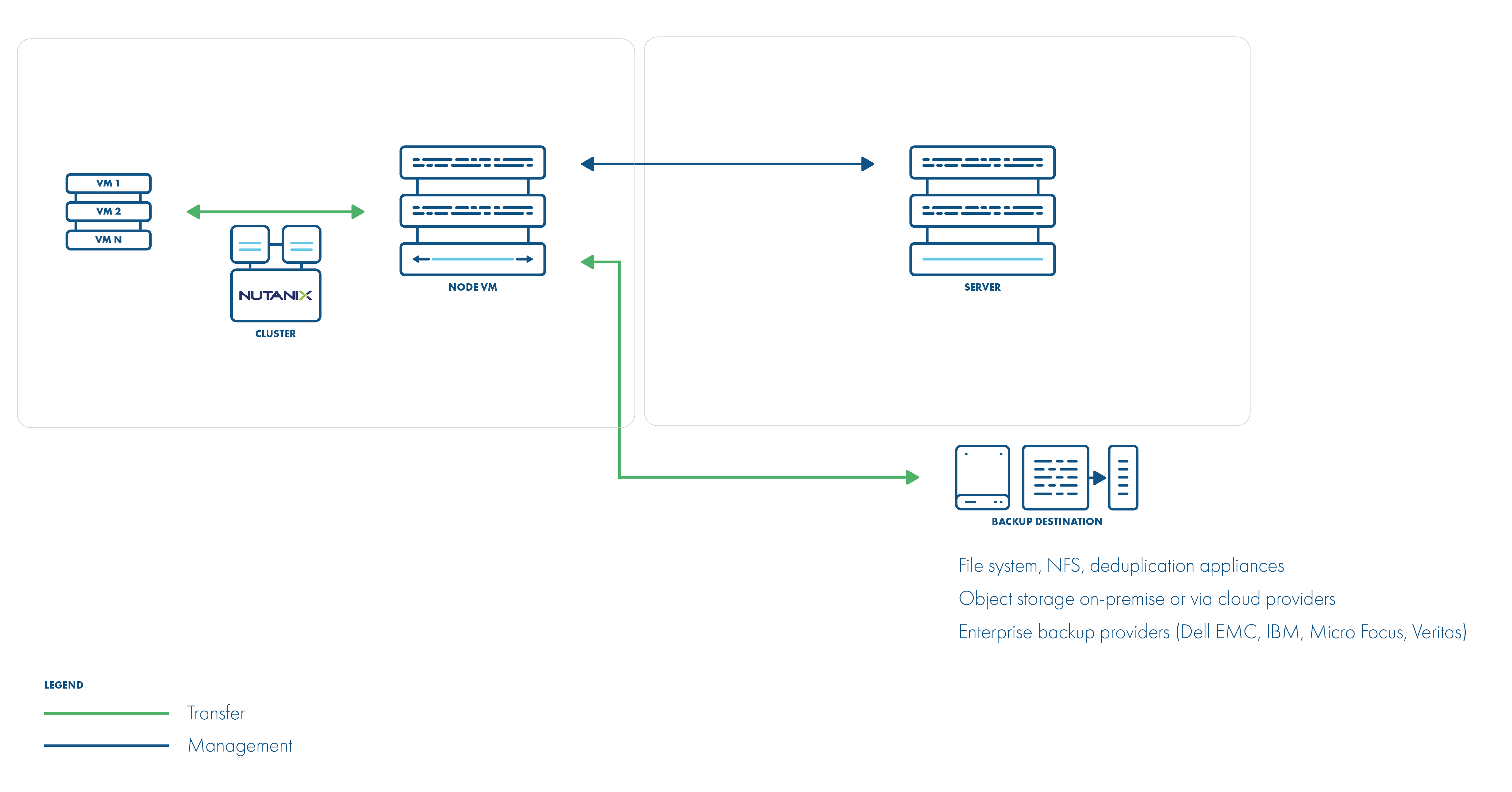 - Each node will handle VMs that reside on the particular hypervisor (which because of data locality may be faster than backup of VMs from other hosts
