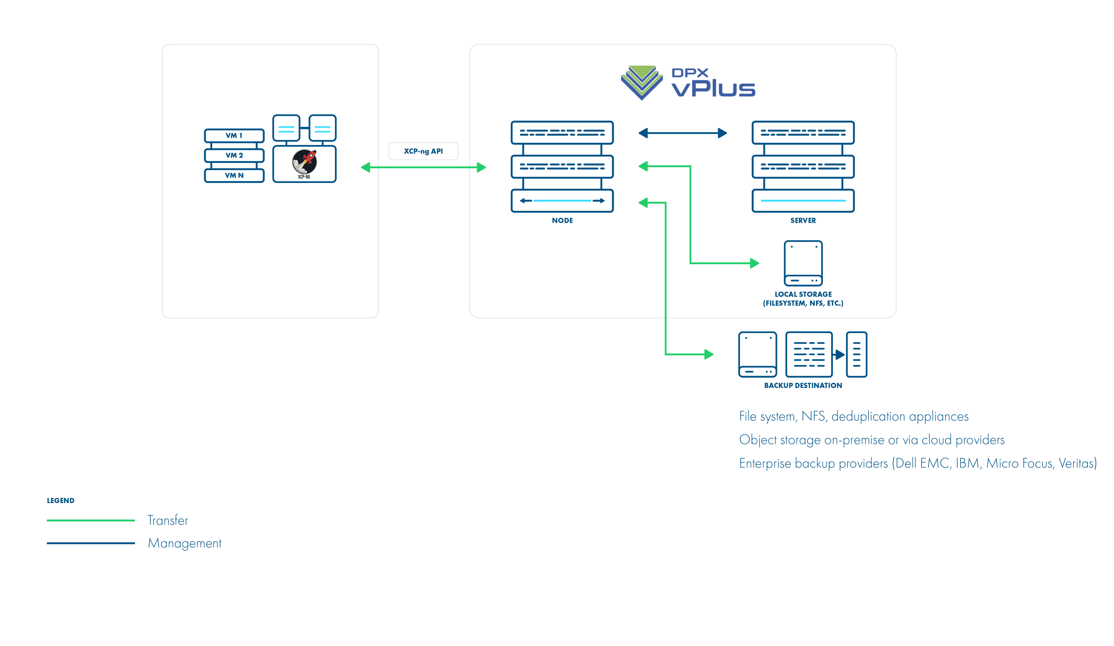In this strategy, the VM is exported as a single XVA bundle containing all of the data. Incremental backup is also supported. Data is transferred directly from the XenServer API without the need to set up anything on the hosts.