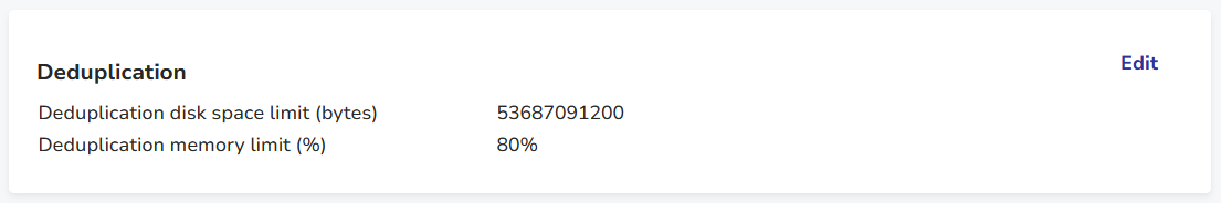 You can edit this section by clicking the Edit button to launch the Edit Deduplication dialog window.
