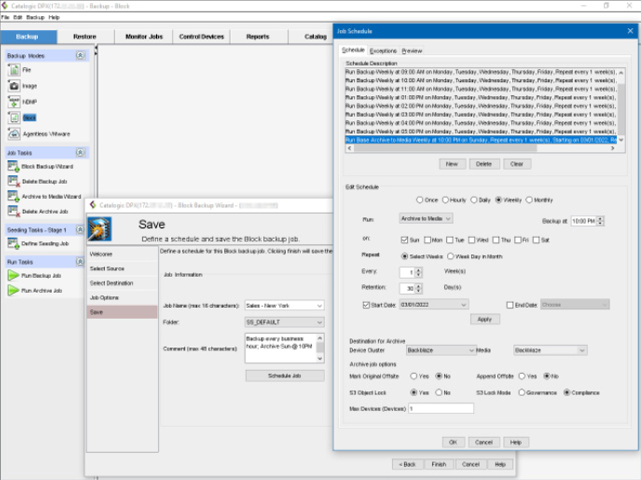 7. In the Job Schedule section, edit the details of block backup jobs and archive jobs as needed, within the same job definition.